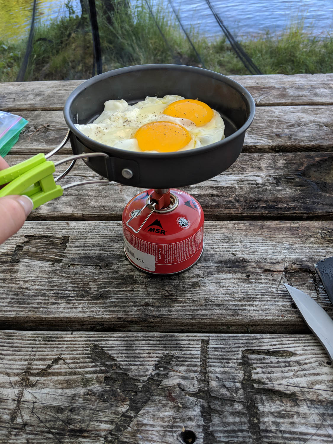 My breakfast was eggs and English muffins! My little pot set from the Explore Magazine Gear Box has been super awesome for these trips. Very small and lightweight for solo trips.