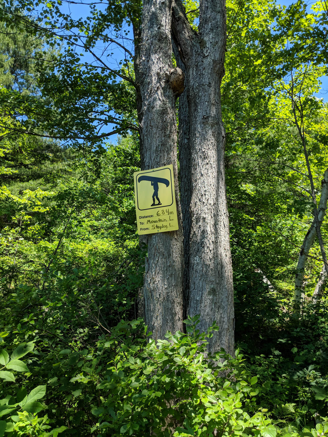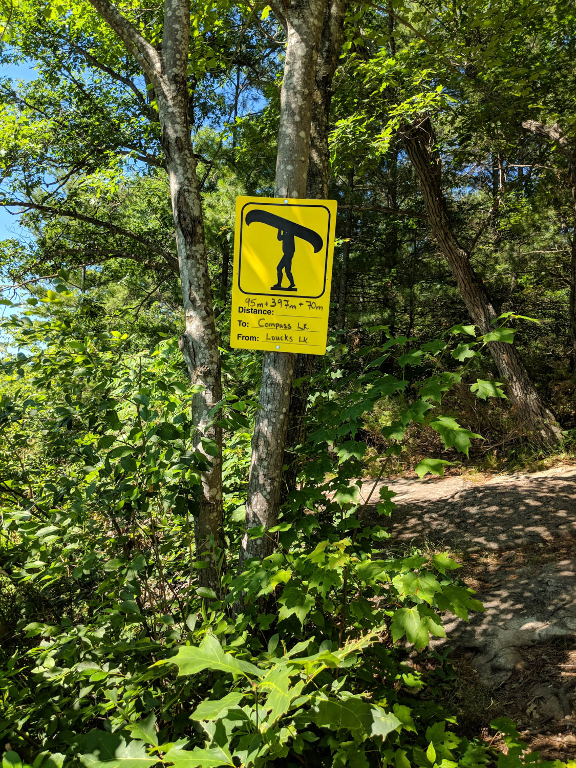 I was then headed to my final portage (number 4) for the day. I haven’t yet tallied how far I have paddled or portaged, but I was feeling it. I quickly found the portage to Mountain Lake. I remember looking back at the Unlostify maps, that this portage had an exclamation mark on it. I forgot to look up in the legend what this meant. I was about to find out!