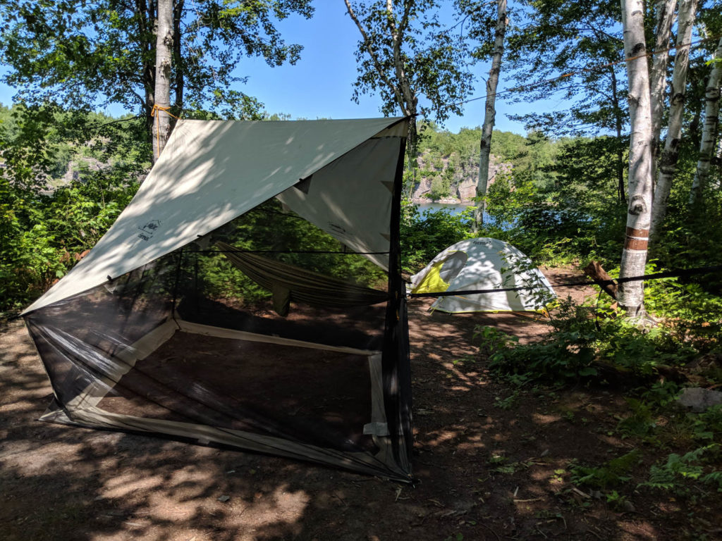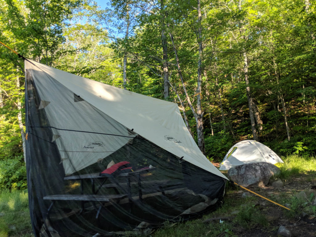 I quickly got my Eureka! tent and NoBugZone shelter up (which was needed as there were lots of deer and horse flies(the bad? maybe?). This was when I noticed some blood on my hand. I had cut my middle finger on my left hand, had no idea how. Oh well. I had lots of duct tape and did a quick fix for the night.