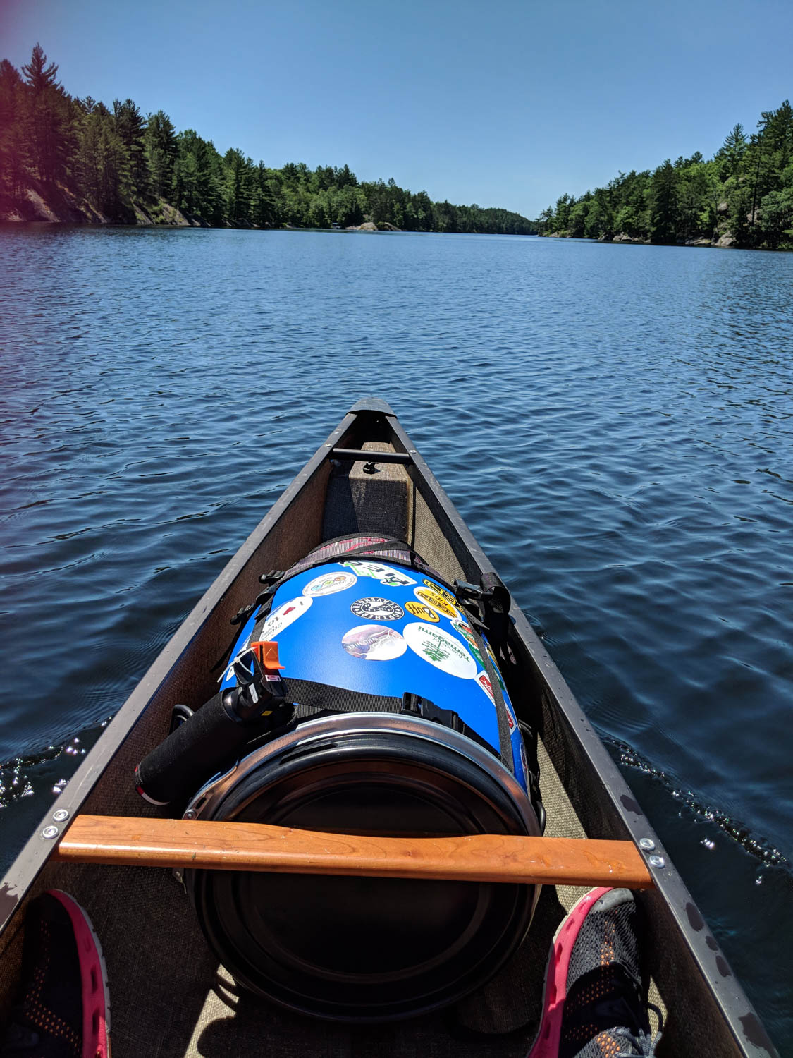 I had a lovely paddle on Buzzard, and was still struggling with my canoe. It was not tracking as straight as I hoped it would (see, I came back to this), and I believe it was because my barrel needed to be behind me for better weight distribution. So, after completing my last portage (now 6 in total), which I have officially called the portage from deer fly hell (there were so many!!! I think I had about 50 swarming me), I moved the barrel to the spot behind my seat.