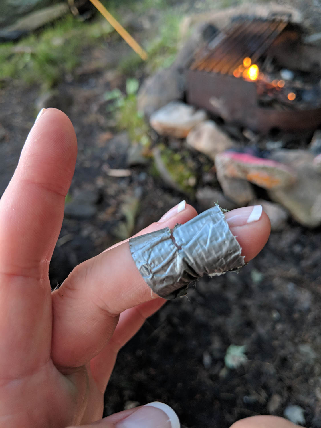 I decided to fix up my finger, with a bandaid and more duct tape over it, just to help keep it clean. I did have to fix this again that night after paddling all day.