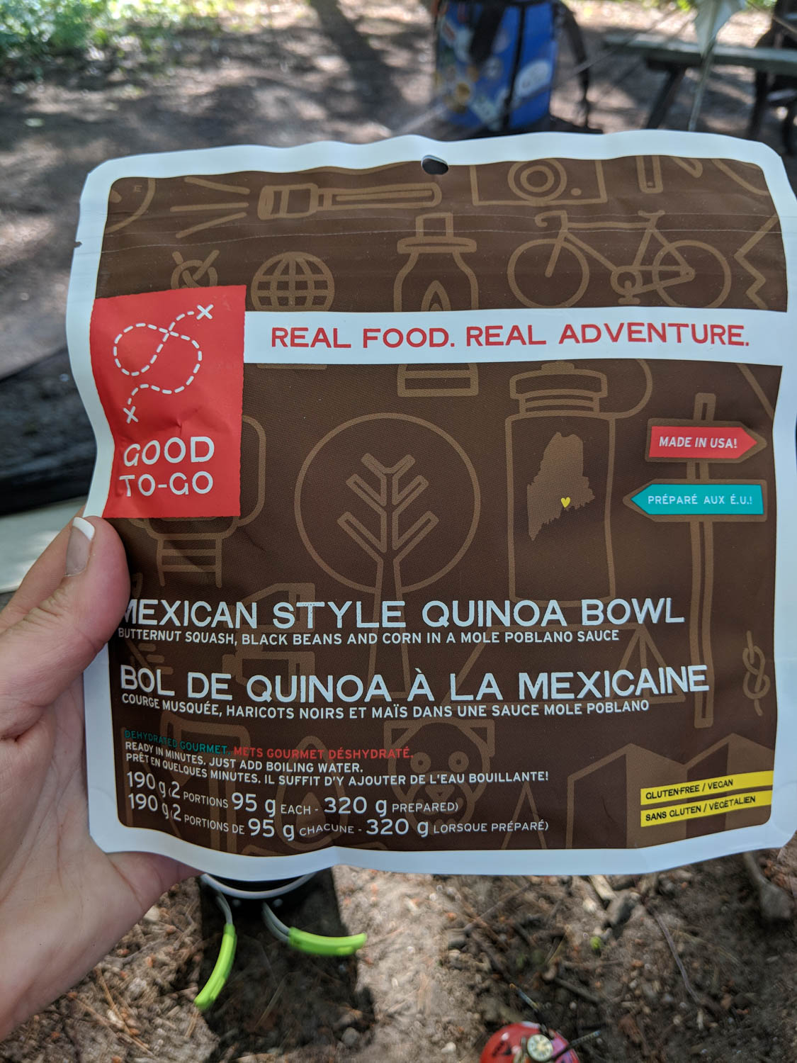 As supper rolled around, it was probably close to 7 at night, I knew I had to try to eat something. I wasn’t feeling the best still, probably from the heat, and eating would be necessary. I had bought these freeze dried meal from MEC, bonus that it has no dairy (since I have a sensitivity and dairy free meals are hard to find). I got it ready and slowly ate. It didn’t go far. I ate maybe just over 1/4 of the bag. It is a two portion meal, but I just couldn’t. Again, my brain is saying eat, my body says no. I ended up making a packet of oatmeal and shoving that into my mouth. I had extras with me, and this is when I truly started to think hard about staying the third night.