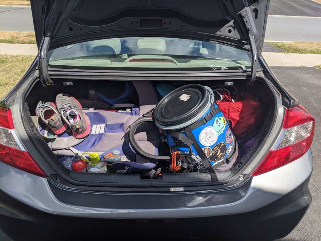 I had all the gear ready to go a week before. Yes a full week. I had to postpone this trip by a week due to experiencing some crazy vertigo that made (canoe) tripping impossible (regular tripping was easy!). Having a week out of the summer disappear like that was not pleasant, but luckily I was able to modify the reservation and did not have to cancel the trip, so when Tuesday morning came, our gear was ready to go. We got in the car and drove North until we found our access at Kingscote Lake.