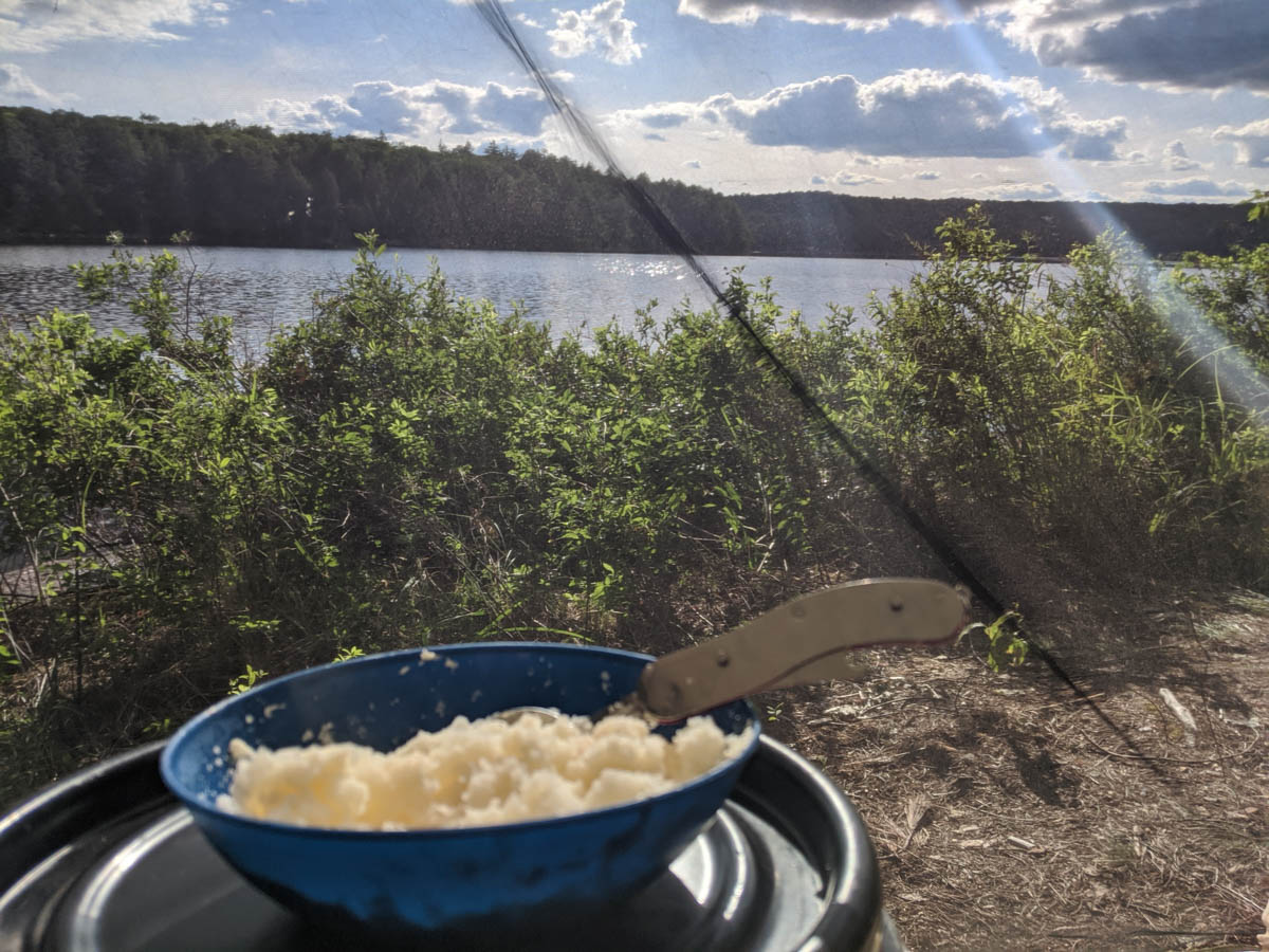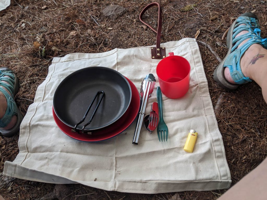 To prepare our meal I used the Waxed Canvas Ground Cloth from Man Camping to keep my items clean and free from the pine needles that littered the ground. Highly suggest this for backcountry trips as I hate getting pine goop and other unknown dirt on my gear.