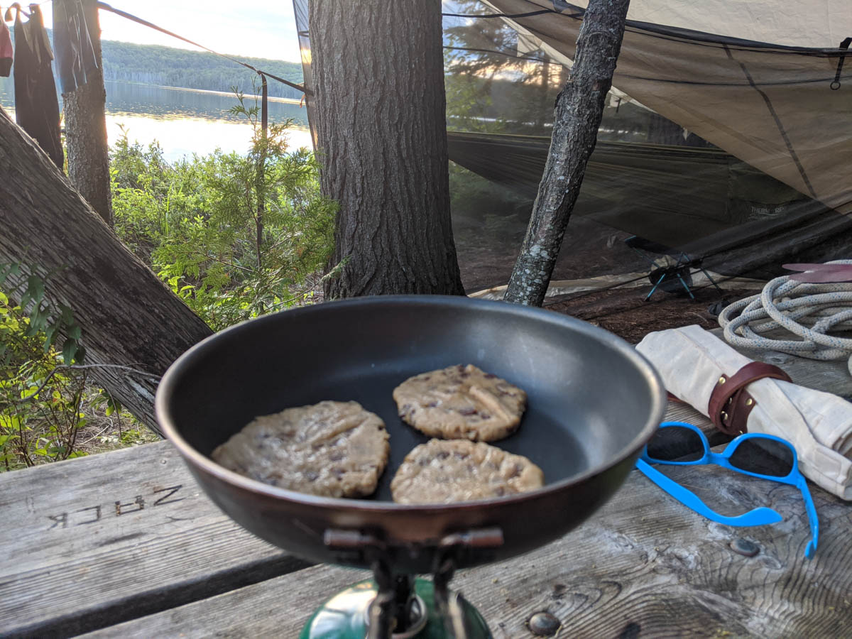 Once back on our site I decided to try to cook up some Pilsbury cookie dough… Note to self: this doesn’t really work and it is best to use a campfire cookie recipe. The cookies turned out to be more of a cookie crumble once completed, but Hayden and I still ate them up.