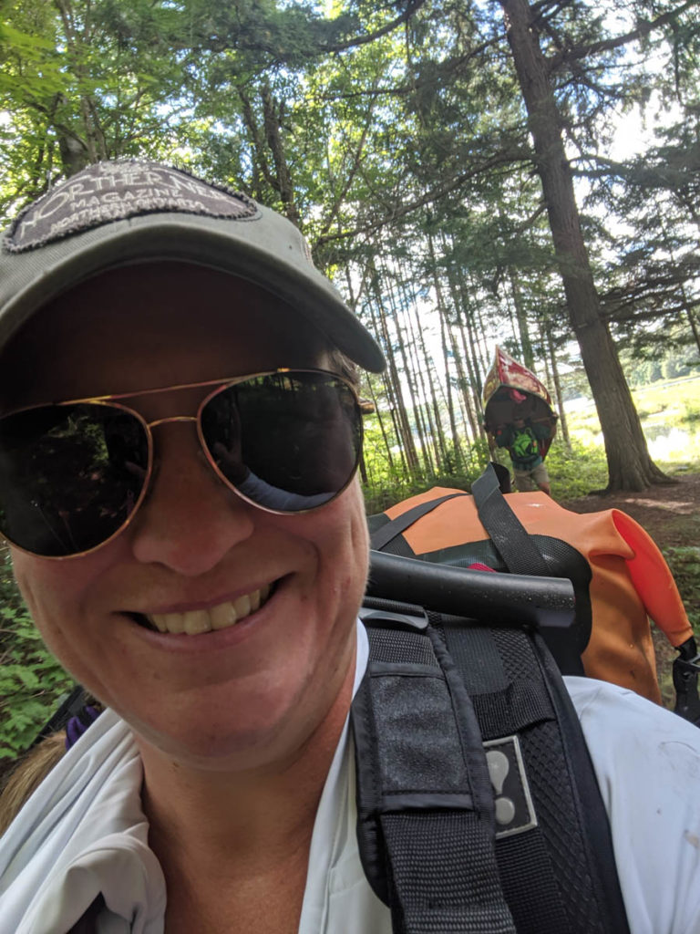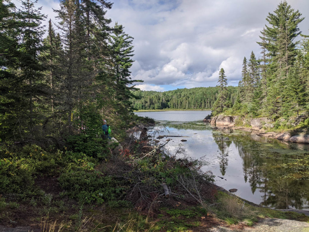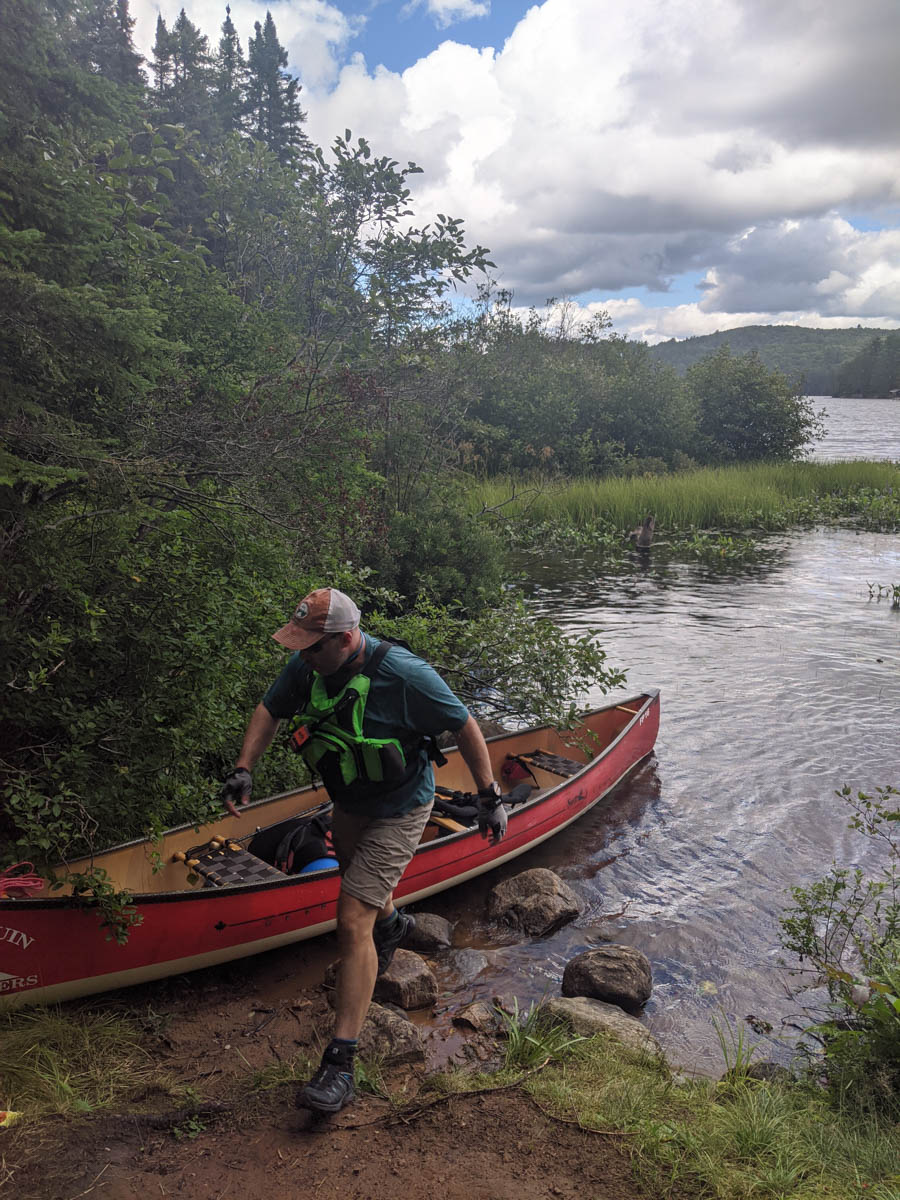 We took the wind and rain in stride and as we hit the first portage from Opeongo to Sproule the sun came out… until we hit the next lake, that is. Once back on the water, the rain showers showed up again. This pattern repeated itself until we reached Kearney Lake.