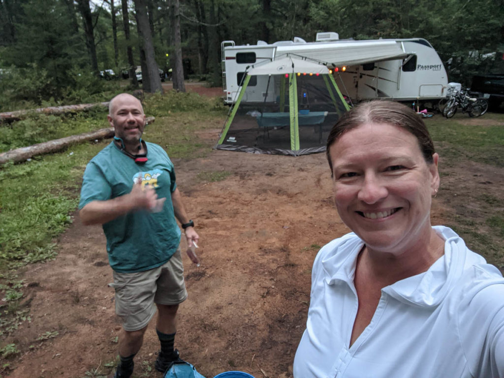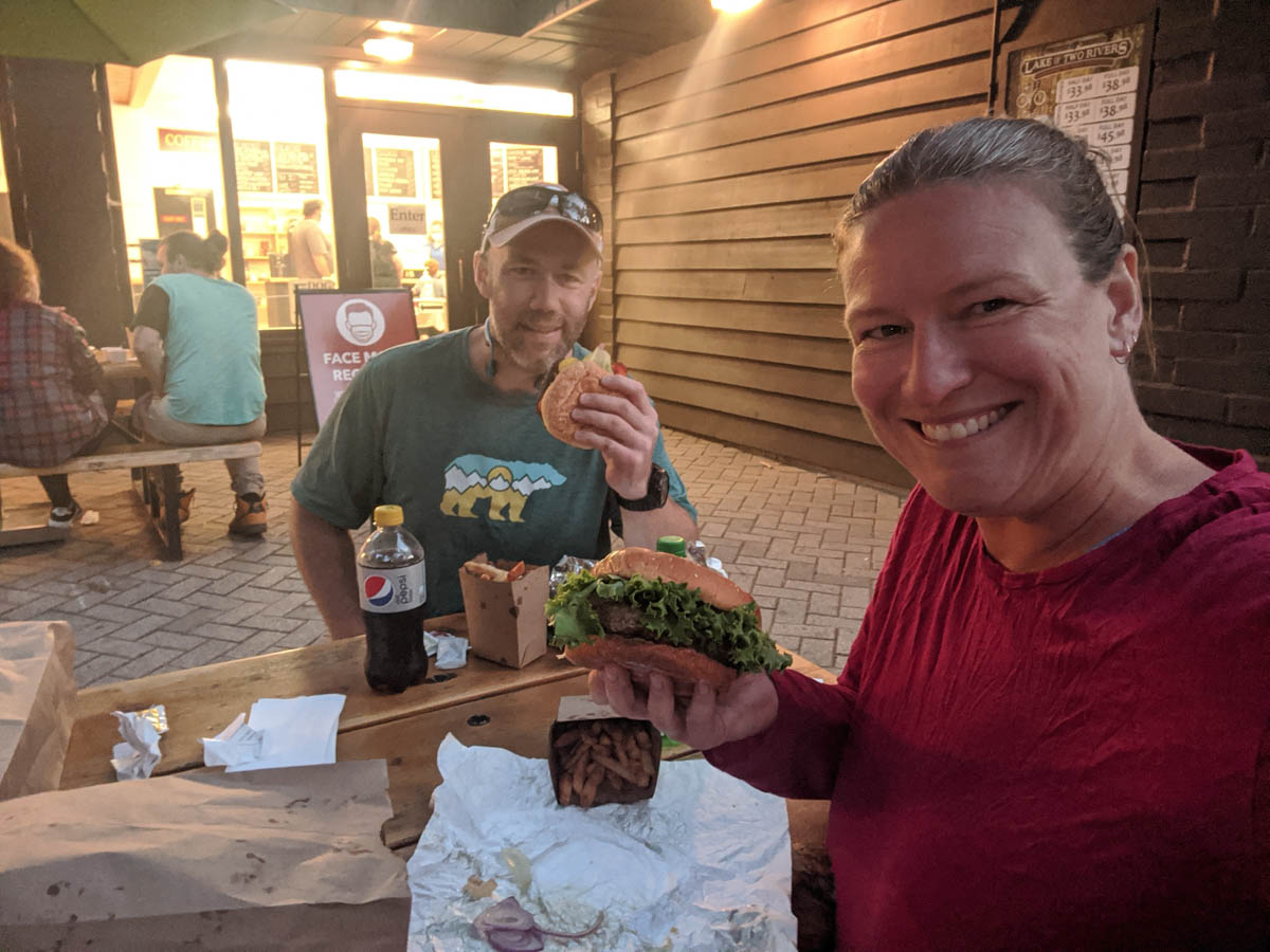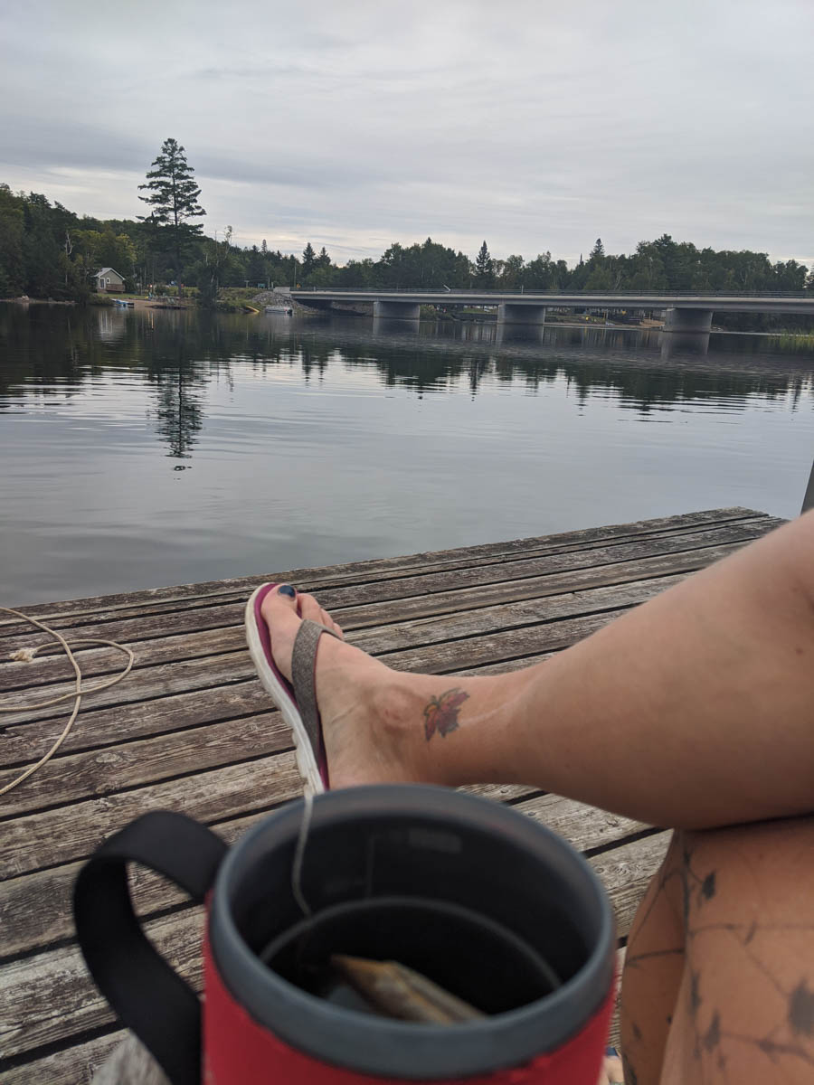 On our travels from Kearney Lake onward we were unsure of our destination for the night. We had to stop somewhere, but there were not a lot of sites available close by. We had a couple of game plans up our sleeve and decided to stop at Lake of Two Rivers beach to assess what we would do for the night. I had checked the reservation system and there was an accessible site open, however they would not let us book it for the night. This is when Scott, a follower of the link, saw us on the beach and came to chat. We discussed our possible plans and we got really lucky. He offered for us to stay on his site for the night! Awesome for us! We accepted and settled in for the night stopping at the LOTR Cafe and Grill for a burger and fries. We sat by the fire enjoying a gifted beverage and chatted about canoe stories and trips. Huge thanks to Scott and Melanie for hosting us that night, it saved us from a late night of paddling.