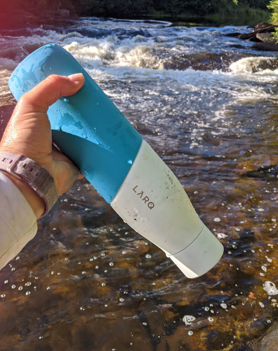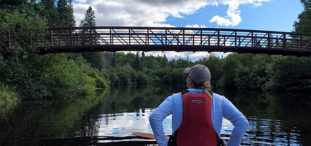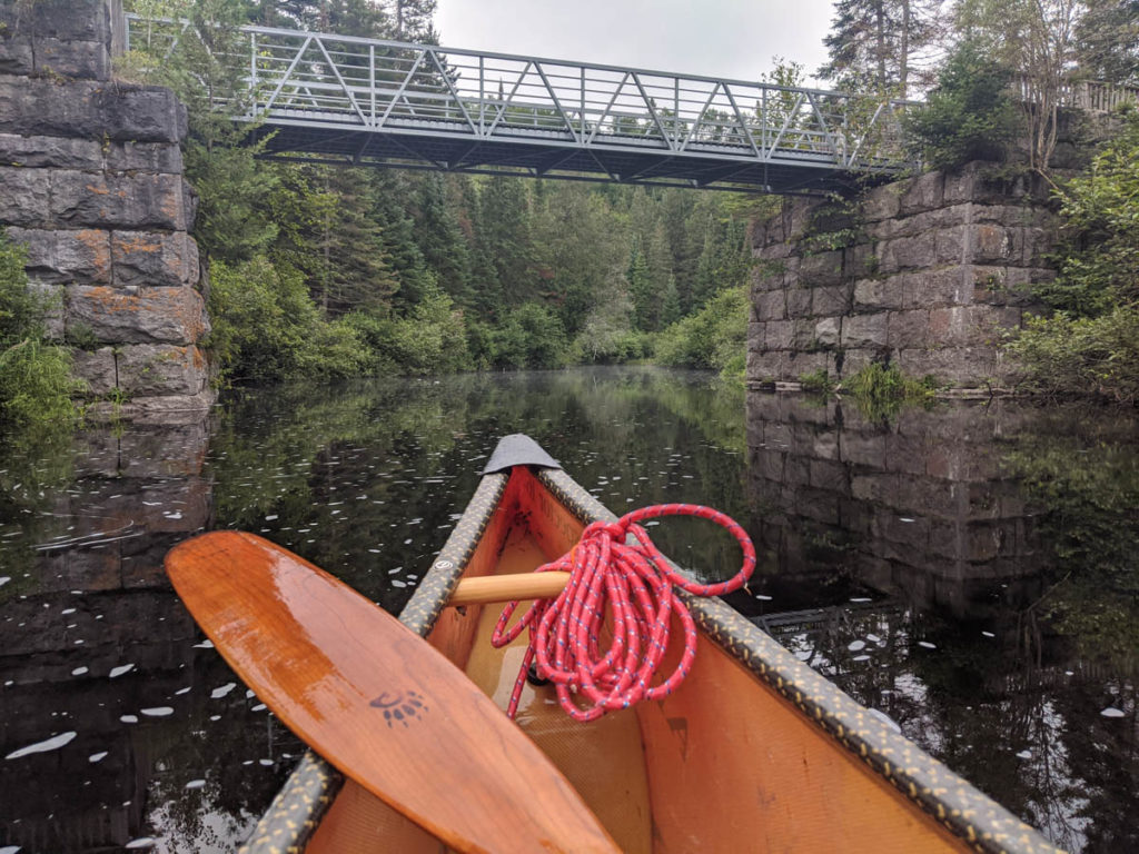 Entering the Oxtongue River was a great feeling as it was our final stretch of this link. We passed under the Western Uplands Backpacking Trail bridge and then kept paddling down river. We had a campsite booked on Upper Twin Falls and made our way to the site to stop and assess our day. Once at the falls we filled up and purifie our water, using my new LARQ water bottle, took in the views of the falls and made an all important decision.