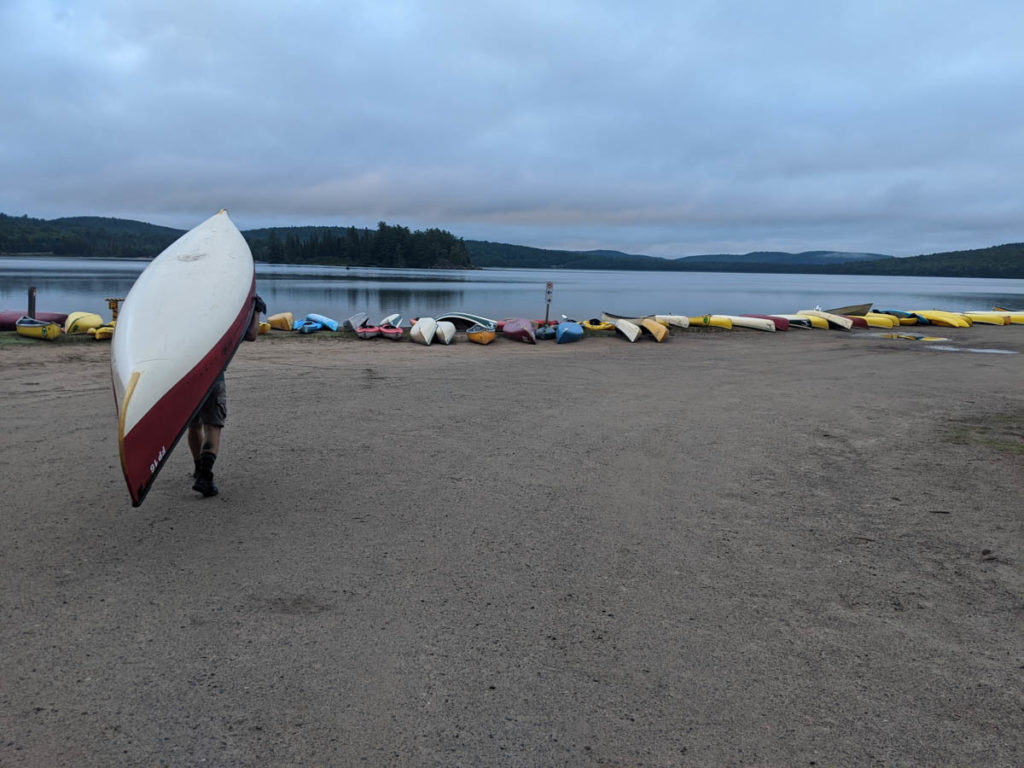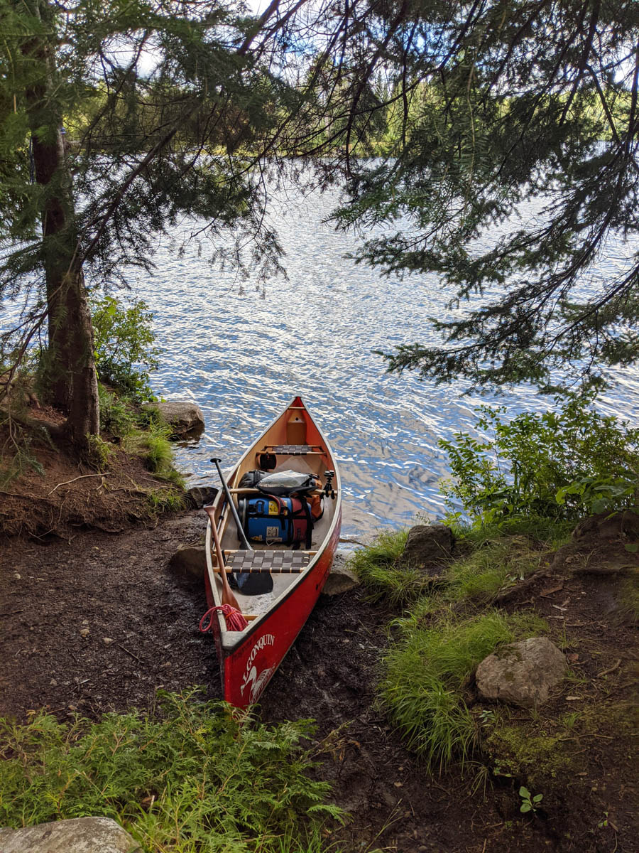 There were some goals we aimed to achieve while on this trip. The first was to make sure we would “single carry” on the portages (taking all gear across each portage in one trip) which meant our gear would have to be as light as possible. Peter is very knowledgeable in lightweight gear, so we figured out how to get all of our gear in one 75L dry bag. Our second pack was a 30L barrel that contained our food and all other cooking and camp gear. We also decided to rent a featherweight canoe from Algonquin Outfitters to make the portage that much more manageable. On the portages, one person would carry the gear and paddles, while the other person carried the canoe and food barrel. The second goal was to travel as long as we could each day (safely of course!).