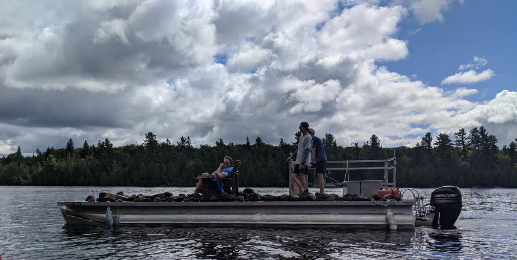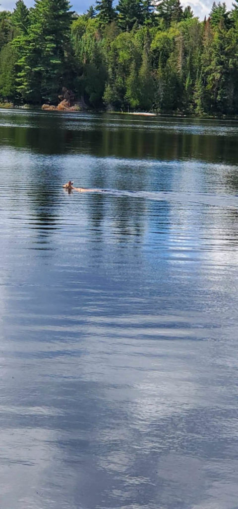 With a quick stop at Camp Pathfinder for our official picture, we took a quick lunch break on the 10 m lift over at the end of Source Lake. Here we had a baby deer come out of the woods and scamper around before heading into the water for a swim. This was the biggest wildlife we saw on the entire trip.