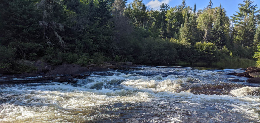 When we heard the sounds of Ragged Falls, now in complete darkness I was happy to know this was the last and final portage for the night. I guided us down the trail and over the rocks until we placed the canoe in the water for the final time at the bottom of Ragged Falls.